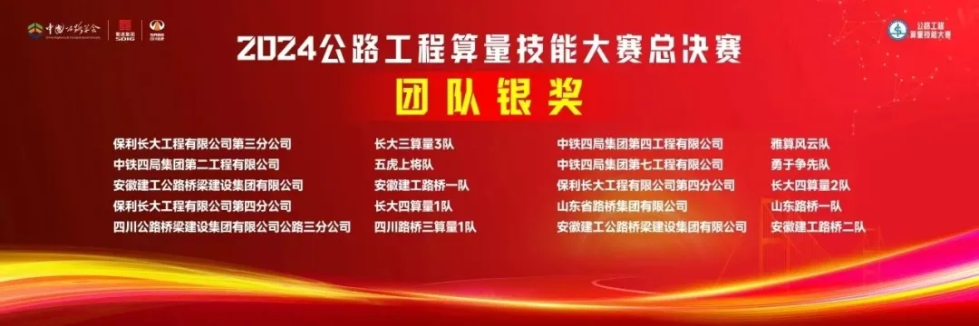 近日,2024年公路工程算量技能大賽全國總決賽圓滿落幕。經(jīng)過激烈角逐,公司在大賽中榮獲1項(xiàng)團(tuán)隊(duì)賽銀獎、2項(xiàng)團(tuán)隊(duì)優(yōu)秀獎。